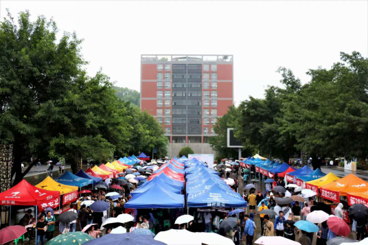 性明朗而不萦心,行自然而无雕饰,见者皆爱而近之。这是2019级萌新们在招新活动现场最真实的写照,每一位社团人无惧风雨,努力做好社团招新现场的各项准备,为的是让更多的萌新们更加深入了解社团文化内涵,你方唱罢,我登场,在社团人热情与专业这样刚柔并济下孕育出这样一副“神奇”的场景。这样的情景下,在雨水的润色下,社团招新活动的形式不同于往年,具有别样魅力,也更具规模,更加独特,更多成果,缤纷多彩。