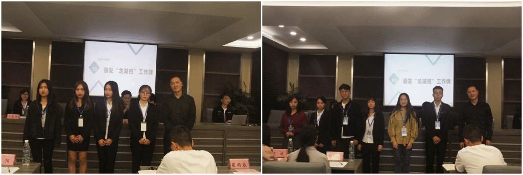 随后,由我校杨德龙老师公布进入“龙湖定向培养班”的学员名单,同时,龙湖物业城市事业部总经理施海波先生为30名进入“龙湖定向培养班”的学员颁发工作牌。这一份工作牌,是龙湖物业服务集团有限公司对“龙湖定向培养”成员的认可,也是30名学员进入其中的资格证,至此,“龙湖定向培养班”的成员便正式融入“龙湖”这个大家庭,大家齐心协力,同甘共苦,共创辉煌。