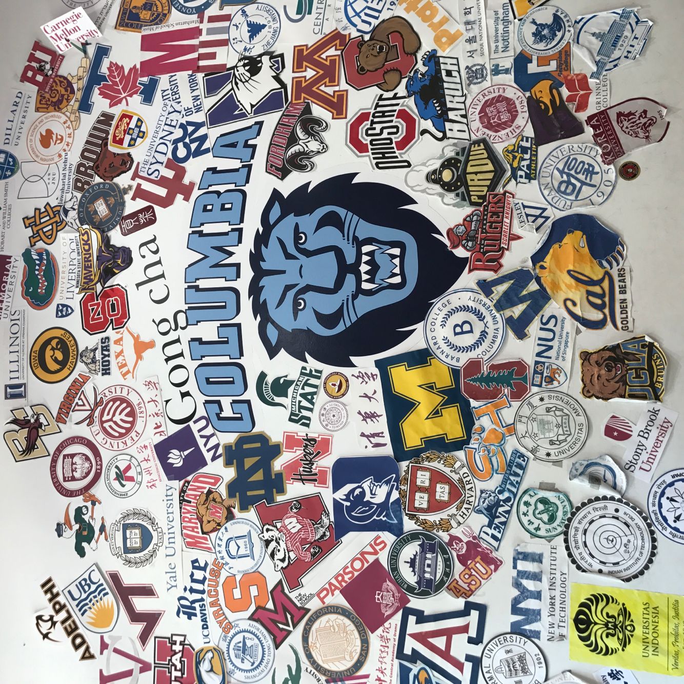来到梦想中的纽约哥伦比亚大学,怀揣着梦想来探索这里的一切。当我看到面前的这一面贴满来自各个国家大学LOGO的贴纸时,我震惊了。哥伦比亚大学在贴纸的最中间,宛如全世界都是围着着它,向它并进,向它学习。因此,得知了哥伦比亚大学的吉祥物是LION,LION象征着权威,勇不可挡,威震四方,是百兽之王,象征着哥伦比亚大学的权威。COLUMBIA大学校徽采用盾形校徽中间,有三个皇冠,皇冠上有十字架。当时英国国教是基督教,国王也是国教的首领。学生以热爱知识的浓厚气氛著称,典型的哥大学生也是文弱睿智、满怀激情的知识分子。全世界满腔的热血围绕着狮子头遍布整面墙。