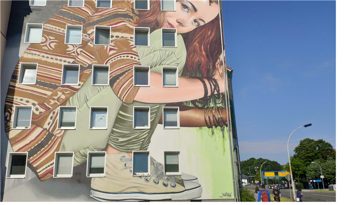 我们从在莱比锡乘坐大巴来到开姆尼茨,一路上经过许多小镇以及一些路边的庄稼地。他们的房子都聚集在一块儿,没有太多的高楼大厦,都是红瓦白墙的小矮房带自己装饰的花园。都说外国人的创造性很强,当然,这一点确实如此,大多数的白墙或者路边都是满满的艺术涂鸦。