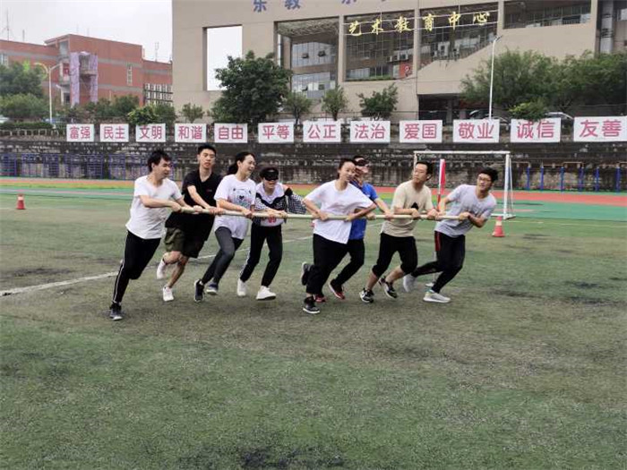 在场地旋风跑活动,需要6名队员带着2名戴眼罩的队员一起完成参赛,他们除了要克服对黑暗的恐惧,信任身边的队员,还要用双手紧紧握住杆子,一旦脱手,则挑战失败。所以,这是对团队成员综合考验。而在比赛过程中,有几支队伍不慎脱手,没有取得好的成绩,但队员们没有相互抱怨,而是相互鼓励,这也是一个优秀团队成长的过程。