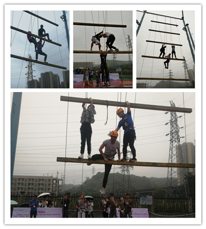 高空勇攀天梯活动中,团队成员克服高空恐惧,敢于付出,相互支持,攀爬了一梯又一梯,一次次的突破自己的极限。人生亦如此,只有不断的突破,才能成就不一样的自己。