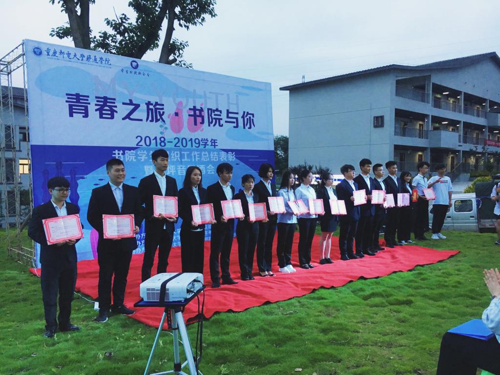 一段书院制介绍视频带领大家回顾本学年书院发生的巨大变化,表彰大会进行到第三项,由书院部彭渝鉴老师宣读《关于重庆邮电大学移通学院2018-2019学年书院各级学生组织先进集体与先进个人表彰决定》。随着一个又一个的名字被提及,PPT上闪现一张又一张集体与先进学子的照片,现场气氛庄重,在场的全体师生们都见证了每一位书院学子的成长,也陪伴着书院茁壮成长。