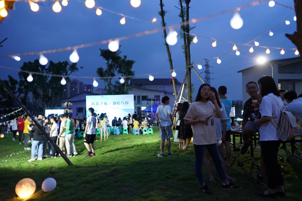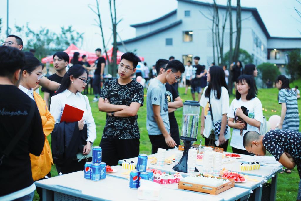 来到活动现场,眼前豁然开朗,彩灯、气球、蛋糕,还有草坪传来轻快的乐曲,自此整个人都放松下来。活动还未开始,现场已一片欢声笑语,老师与同学们愉快的交流着。