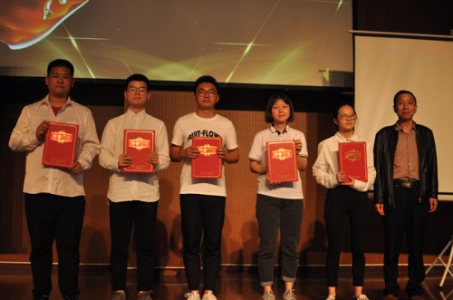 大家为获胜队伍欢呼的同时,第二轮词王争霸赛也拉开序幕。各参赛队分别推选出两名优秀选手进入词王争霸赛,选手依据赛前抽签顺序依次进行车轮战听写。各个队员都不甘示弱,沉着应对,准确快速反应,为校争荣誉,最终,由来自重庆师范大学涉外商贸学院的选手骆旋同学赢得本届比赛的词王称号。重庆邮电大学移通学院外语系系主任吴世银老师为获奖队伍及选手颁奖。