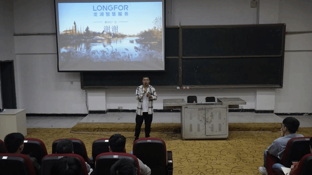 随着宣讲会接近尾声,龙湖物业服务集团有限公司还邀请了我校目前就职于龙湖物业集团有限公司的校友王坤进行工作经验分享,通过王坤校友的精彩分享,也让在座的同学更进一步了解和走近了龙湖。