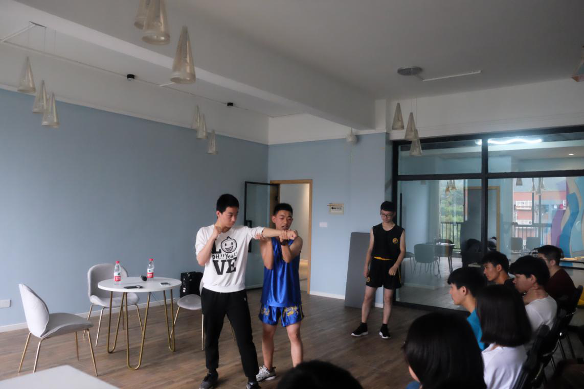 在简单的热身暖场之后,两位教练为大家讲解了一些跆拳道与散打的基本知识,并且教大家如何在练习之前做准备运动,避免自己在练习的时候受伤,同学们听得很认真,表现出了对学习跆拳道和散打的热情以及对教练的敬佩之情。随后,两位教练便开始了实战训练,并通过案例情景教同学们如何发力,出拳,格挡等等。