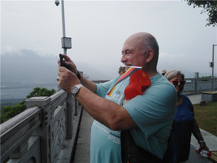 观景台上的三峡宏伟巨大,眺望远景十分漂亮。无论中国人还是德国人,都纷纷与之合影,想要记录下这壮丽的伟大工程。
