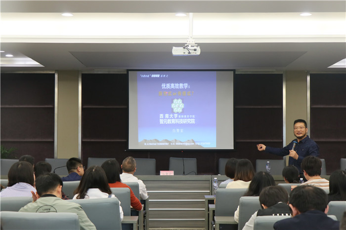 为提高教师课堂教学质量、加强课堂教学实效性,帮助教师了解最新教学理念、探讨教育思想, 5月10日下午16:00,思政教学部邀请西南大学教育学院白智宏教授在行政楼601做题为《优质高效教学:探究or传授》的教师培训专题讲座。思政教学部、通识教学部、远景学院共计60余名教师全程认真倾听学习。