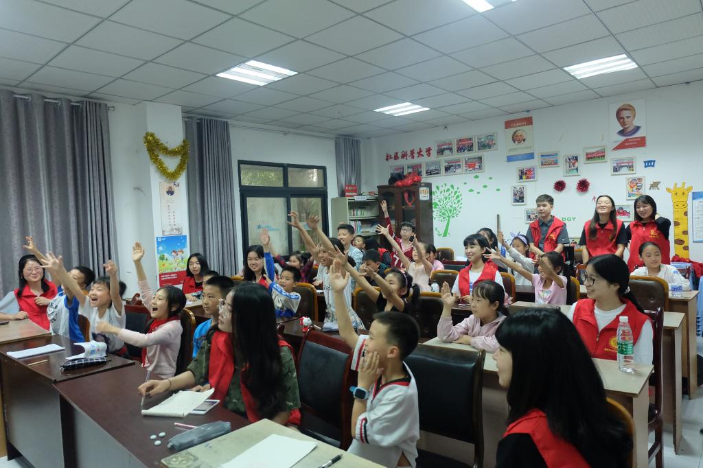 在英语趣味课堂中,小朋友们都积极参与到外教Clive的教学,纷纷举起小手参与课堂互动,和Clive一起快乐地学习英语。另外在“妈妈,我想对您说”环节中,小朋友们争先恐后的上台表达对妈妈的祝福:“祝母亲身体健康,天天开心!”“祝妈妈永远年轻漂亮!”等。我们的志愿者受到小朋友们的鼓励后也上台表达了对自己母亲的祝愿。而后,这次母亲节特别活动在“抢板凳”游戏中圆满结束。