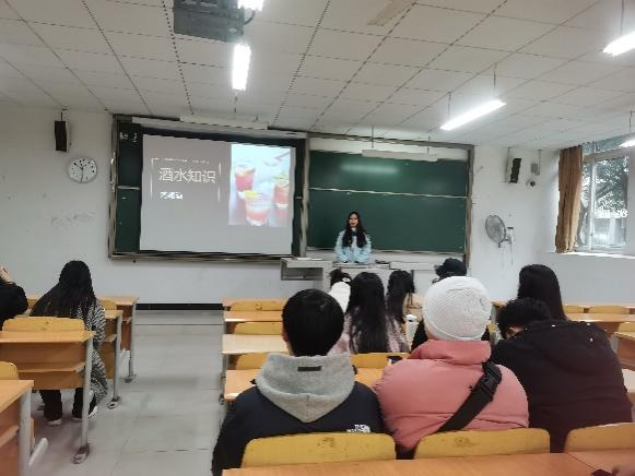 新思路、新方法,徐桂霄老师结合学生的专业开展活动。通过和学生们的聊天了解到学生们以前学的专业有高尔夫,旅游管理,高铁乘务,空乘、医药销售等等。每位同学都有各自的优点,为了让同学们对其他学科有一个了解,实现多学科交叉融合学习,开展高尔夫分享和调酒分享。