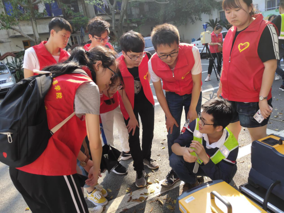 在清楚如何操作机器后,志愿者们便着手仪器进行实验。志愿者们进行了分组以体验不同的监测环节,检测站的工作人员们则给予我们的志愿者以帮助指导,以避免因操作不当产生的危险。