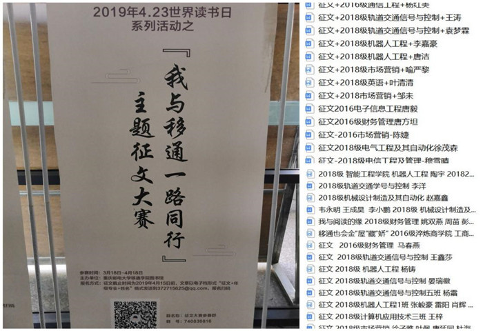 历经一个月的时间,本次主题征文大赛收到来自全校各院系六十多组参赛读者投来的稿件。同学们通过征文讲述自己在移通的成长和收获,探索对校园学习环境的营造,思考大数据背景下高校图书馆的服务创新。