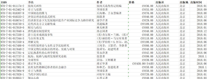 (部分书目表)