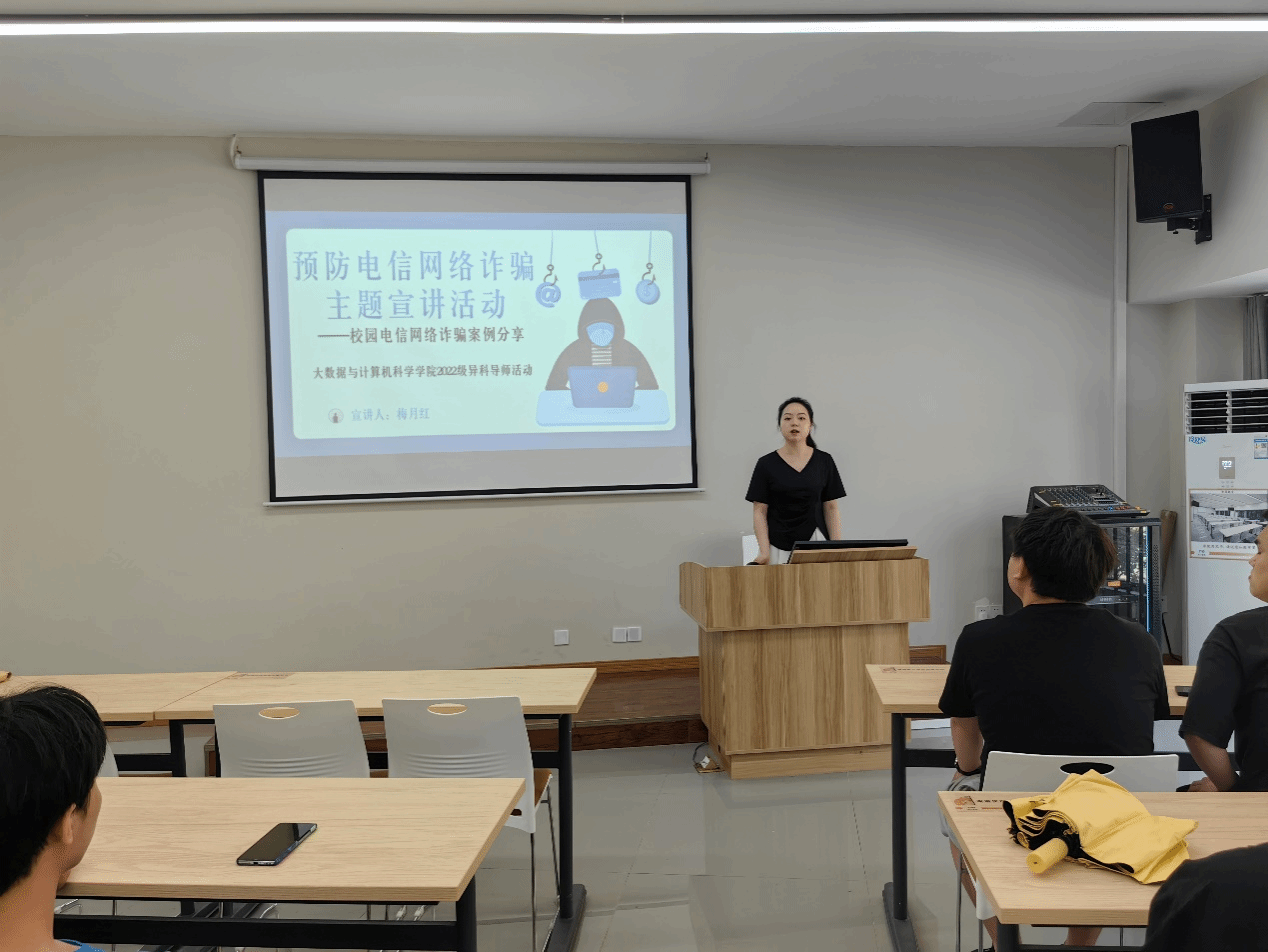 如今,电信网络已经给人们的生活提供了众多便捷之处,但随着电信网络的发展也滋生出了诈骗等危害人们权益的事件。为响应国家、学校“反诈”号召,进一步提高学生防诈能力,4月19日下午,大数据与计算机科学学院异科导师梅月红老师及李佩老师,为同学们分析了校园诈骗案例,宣讲了防诈知识,以筑牢校园安全屏障。