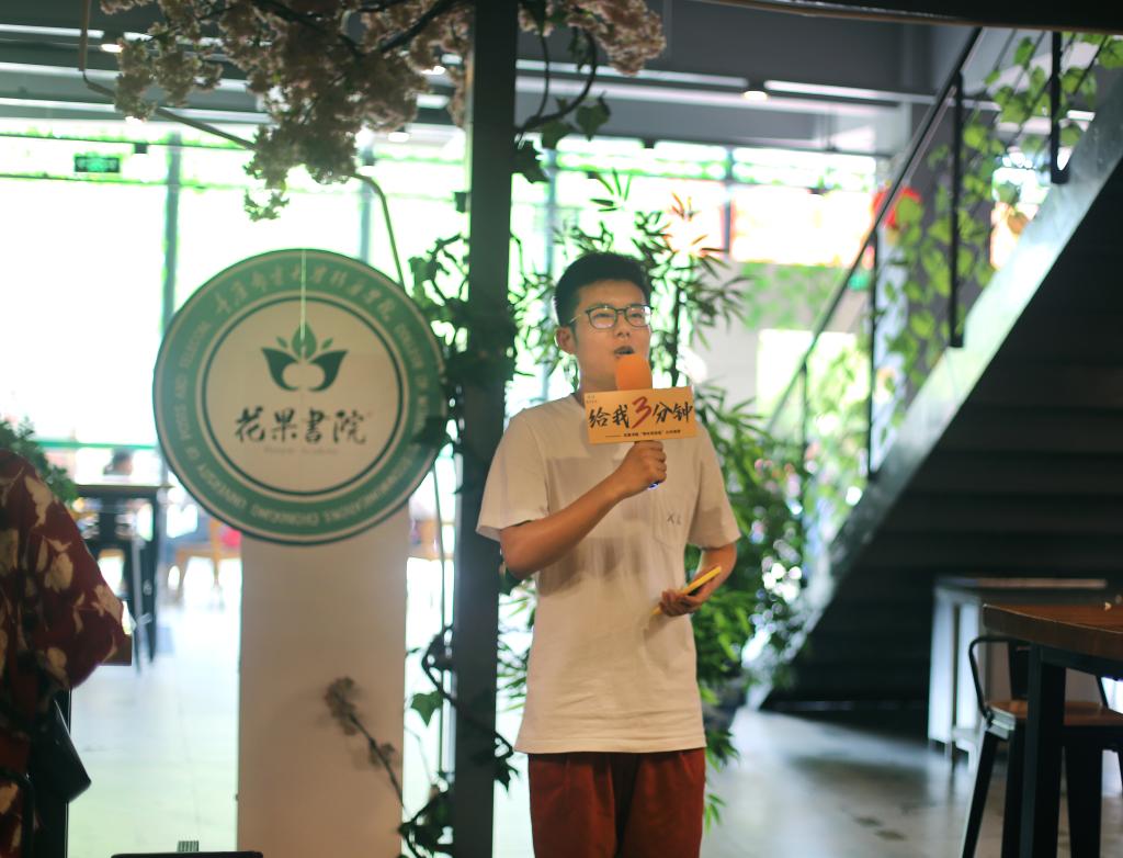 三分钟很短,短到只能喝二分之一杯咖啡,吃三分之一的苹果,不能听完一整首动人的歌曲。三分钟也很长,长到能阅读一个精彩的故事,写一份上百字的文稿,也能做一场精彩的演讲。为了能让大家敢于发声、勇于展现,培养大家的感召力,2019年4月25日,由花果书院举办的感召力养成企划之“给我三分钟”公路演讲第一期,在文峰食堂(A食堂)、北苑食堂(C食堂)圆满结束。