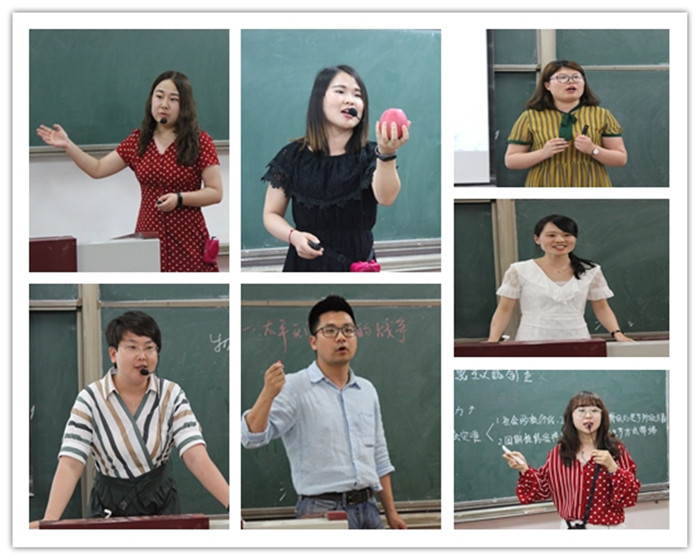 在比赛中,每位参赛教师都悉心准备授课内容,精心设计教学环节,采用多种多样的教学方法,展示各具特色的教学方式。怀着宝宝的靳银霞老师,不畏炎热,坚持完成比赛;张燕霞利用苹果更加浅显易懂地讲解了“感性认识和理性认识”;毕毓璟老师的快闪PPT一下子就抓住了大家的眼球。老师们纷纷创新教学手段,深入浅出地阐述知识要点,展示出扎实的教学功底和多样化的教学风格,赢得在场师生们的赞叹和掌声,充分展现了思政教学部青年教师的教学风采。