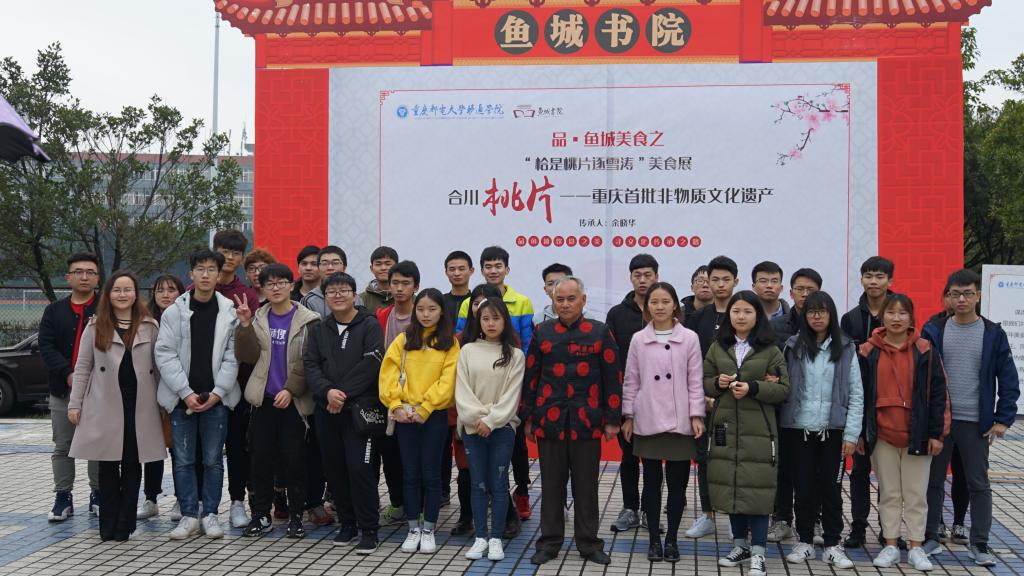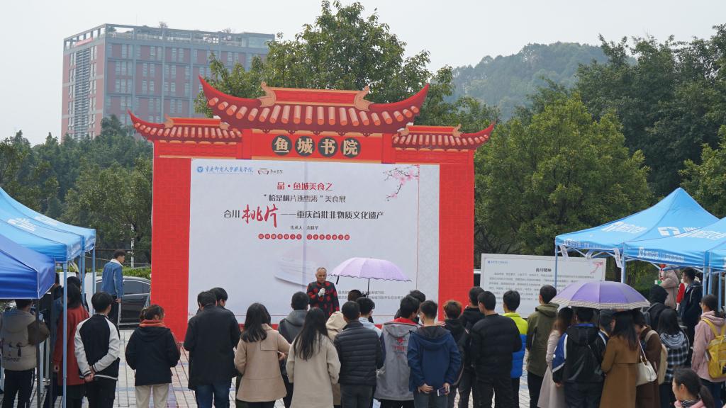 为引起更多学子对保护传统文化的重视,并意识到自己有责任积极探索、传承传统文化的创新形式,关注合川文化、鱼城文化,做传统文化的保护者和传承者。2019年3月15日鱼城书院在三江食堂广场举办了品·鱼城美食之“恰是桃片逐雪涛”美食展。本次美食展重点展示合川区首批非物质文化遗产——合川桃片,为此鱼城书院特邀请余晓华先生作为合川桃片的第四代传承人亲临移通为在场学子就传统文化传承做出分享并现场演示桃片制作流程。