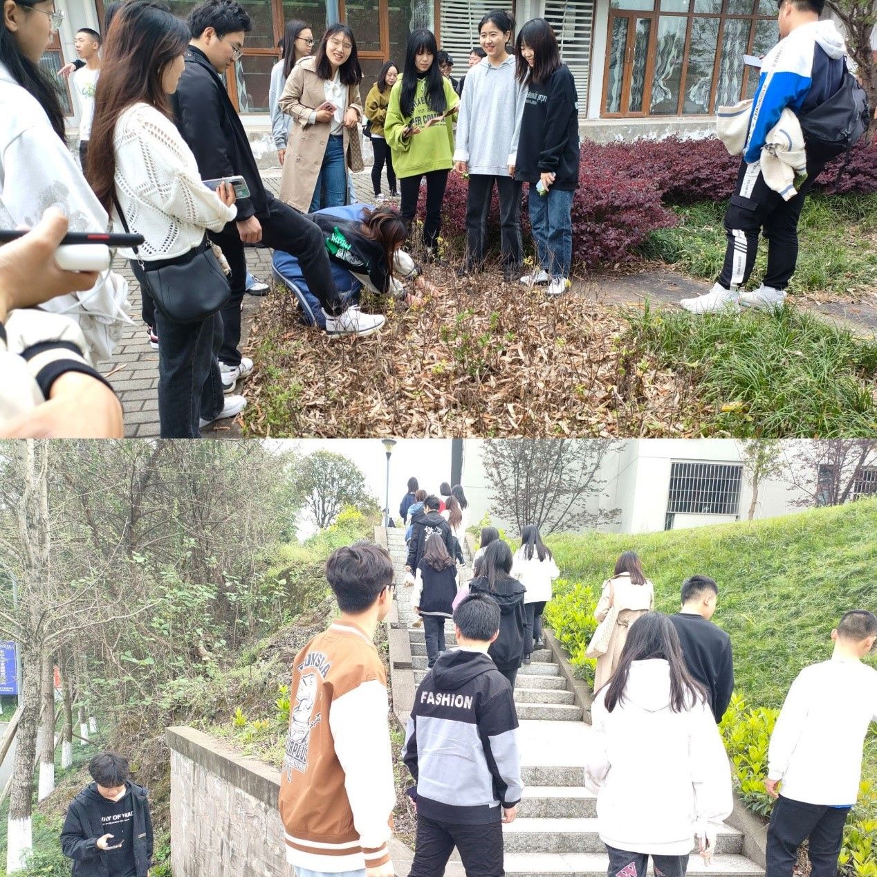 活动开始,梅月红老师给学生们介绍了此次活动的背景,想通过这样的活动让大家明白今天幸福生活来之不易。梅月红老师给大家讲述了革命战争时期,由于敌人封锁,红军战士们顿顿都是“红米饭、南瓜汤”,这种寡淡无味的饮食,对今天大多数同学来讲都是难以下咽的。并告诉大家过去红军路上的饭食都需要随地取材,混合在玉米面、麸皮里做成窝窝头。让大家明白了什么是红军餐。接着在梅老师带领下,大家一同出发在学校北校区寻找野菜,同学们一路自由组织,认真寻找,收获满满,找到了折耳根、苋菜、野茼蒿等。最后大家又回到行者公园,一起分享自己的收获。