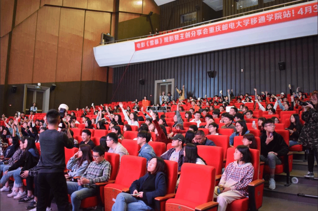 2019年4月15日,由崔斯韦执导,张震、倪妮、廖凡领衔主演,黄觉、刘桦、张奕聪主演,李光洁特别出演的电影《雪暴》来到了美丽的三江合川进行电影路演宣传,与重庆邮电大学移通学院的上千同学相聚一堂,热情交流。路演现场不仅有首次曝光的精彩片段让同学们大饱眼福,还有电影主创和同学们的面对面交流,分享电影拍摄、制作过程中的趣事。《雪暴》电影制作团队坚持拍好中国电影,致敬森林守护者的决心和态度也赢得了同学们的阵阵掌声。