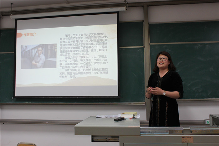 活动伊始,刘世凤老师向在座老师们首先介绍了《历史的温度3:时代扑面而来,转瞬即成历史》这本书的作者——张玮,他曾获得亚马逊中国颁发的“2017年度新锐作家”称号,创办了“馒头说”公众号,其文笔朴素易懂,注重历史的细节描述,擅从多角度剖析和评判历史事件及人物。刘老师谈到,她之所以分享本书,是因为张玮在写作中清晰深刻的思辨力和洞察力赋予了历史以新的情感,让她对历史有了更深的认识。