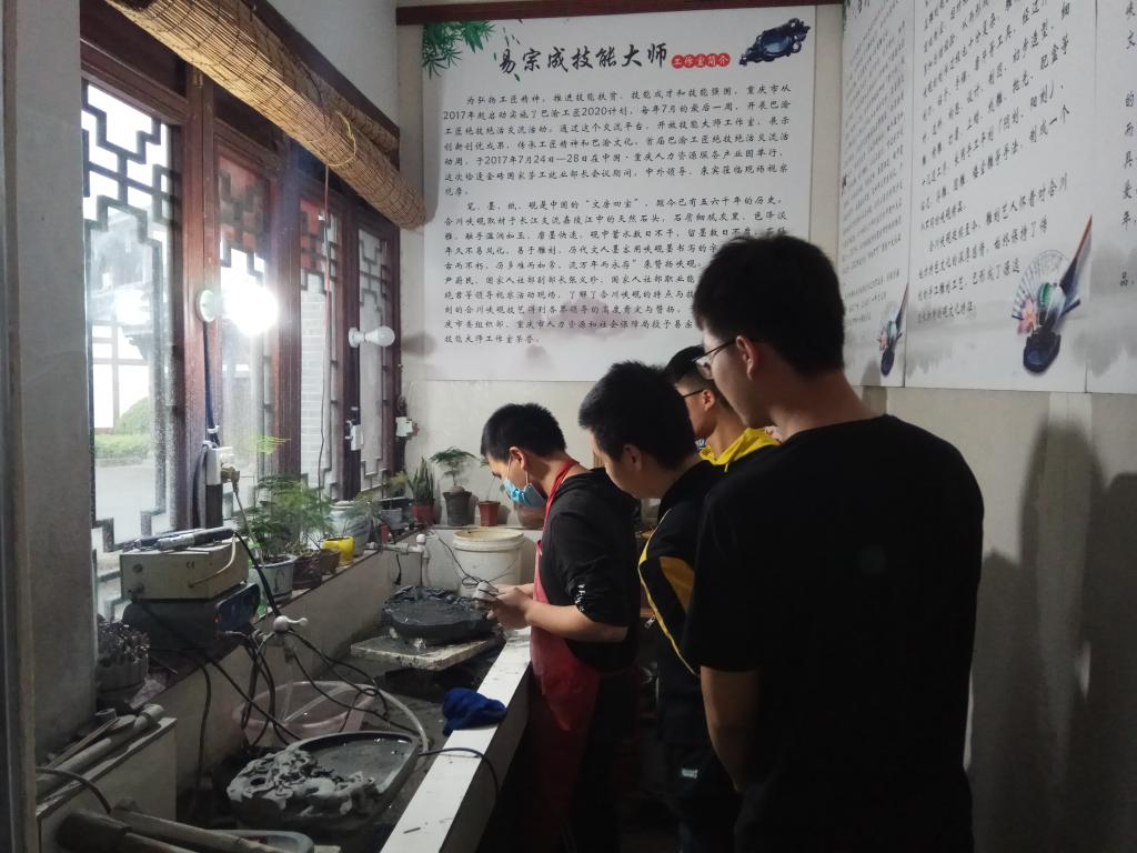 近砚之身,会砚之友。静心观看砚台打磨过程的同时,也不禁感概成品制作的不易和匠人的辛勤付出。了让合川峡砚雕刻技艺不失传,只要有人愿意来学,他可以分文不收,免费教学。据悉,易老师的徒弟之一姜翰林,正是来自我校的新疆籍大四学生。此次砚台之行,不仅仅是从观赏的角度出发,更是希望同学们在活动过程中,切身感受来自工匠们内心的那份炽热之情,学会去转化这份情感,将这份热情用于自身的学习和生活中去,积极弘扬传统文化,不断传承工匠精神。
