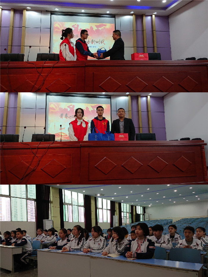 正值清明节到来之际,在宣讲开始前,大家首先面对团旗为先烈们默哀了一分钟。默哀结束后,钓鱼城研究会的志愿者们将《钓鱼城文从》系列图书赠予了南屏中学。