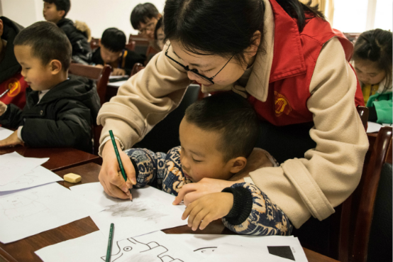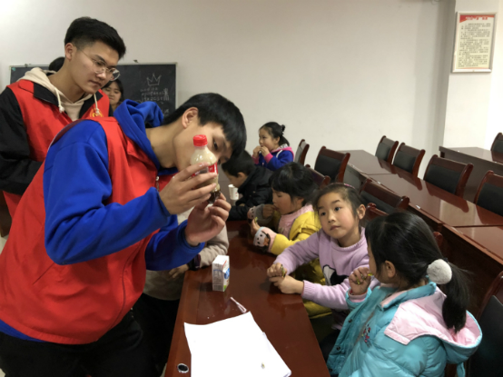 对于绝大多数人来说,童年莫过于是人生中最美好的一个阶段。青春的列车,将志愿者们载向童年,仿佛时光机重启,进入岁月漩涡。这里的大多数都是从小就在乡村街道、土地里奔跑的孩子,没有年轻的父母陪伴,只有上了年纪的爷爷奶奶的照顾,而当志愿者们来了就不一样了。课堂上,志愿者陪伴小朋友们一起学习,共同成长,教他们不曾接触过的新事物,教会他们用新的眼光看世界。而活泼可爱的他们仿佛春日里的一束阳光,洒进每个人的心田,浸染每一寸土地。