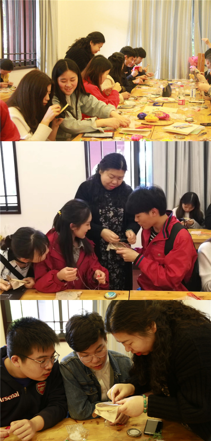 同学们从初始的无从下手,到学会用一根根色彩斑斓的绣线,在针与舞的交舞中,在绣布上绣出精美的图案。两个小时的传习课被延长至两个半小时,同学们依旧围着老师请教针法,沉浸在刺绣制作艺术的美妙中,不愿离开。中国这种精美绝伦的刺绣艺术的未来指日可待,一定会在大学生群体的学习创新中被保护传承下去。