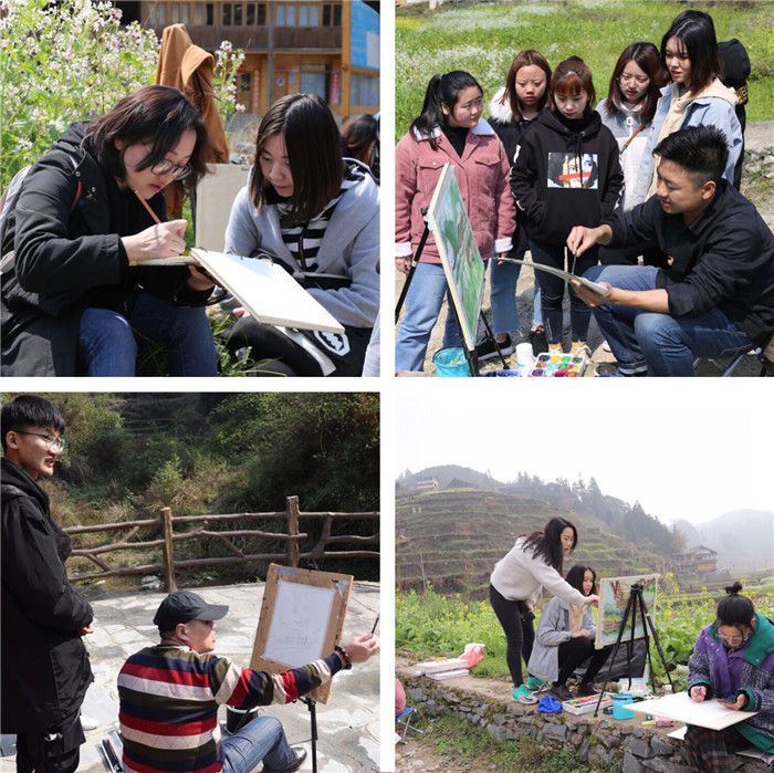 写生采风作为一种传统的绘画基础训练,是艺术类学生不可或缺的一项专业练习。“工画而无师,惟写生物”,写生不仅可以积累创作素材,寻找艺术灵感,更为显著的是提升自身的专业素养,训练艺术洞察力,发散创意思维。经过周密的部署和充分的前期准备,艺术传媒学院2017级动画专业学生于3月22日展开为期8天的贵州肇兴侗寨写生之旅。