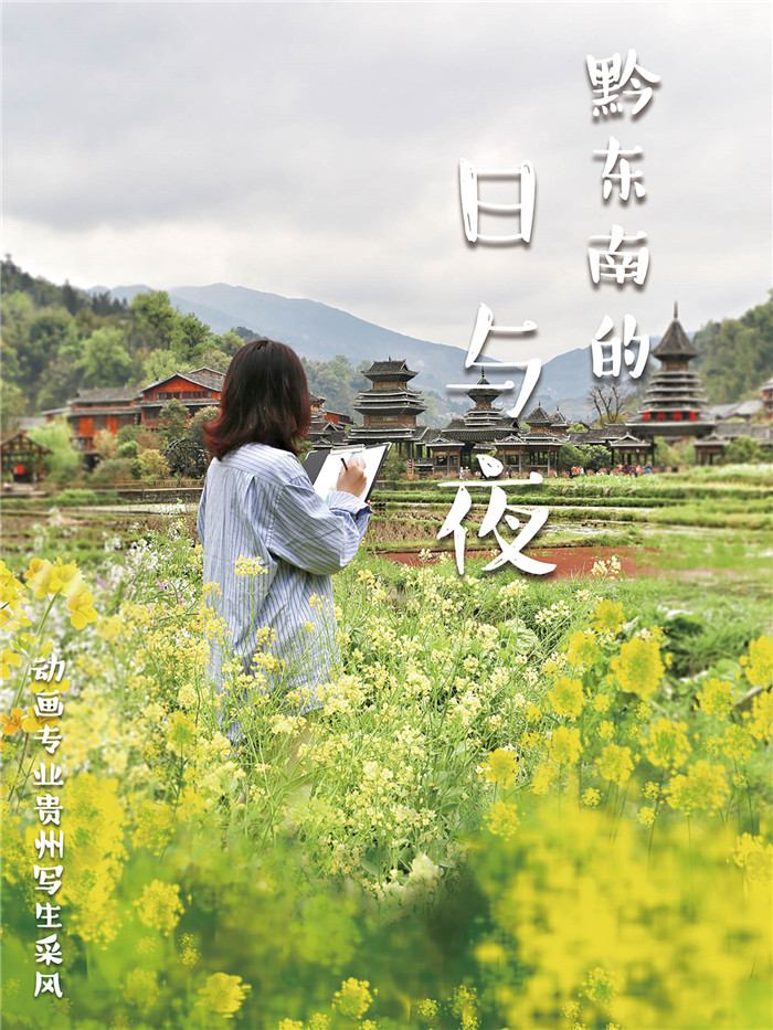 贵州肇兴侗寨是全国最大的侗族村寨之一,是鼓楼之乡、歌舞之乡,风景秀丽,景色宜人,民族文化历史悠久,素有“侗乡第一寨”之美誉,是写生采风的好去处。初入写生地,灿烂的鲜花、静谧的湖水、倒影的垂柳,唤起了同学们极大的创作热情,很快投入到写生活动中。在当地导游解说员的介绍中,同学们了解到侗寨的风土人情,并领略了当地的民族文化。