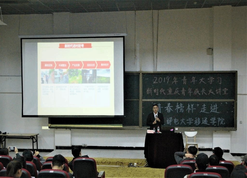 榜样抒写青春,榜样引领青年。2019年3月27日16时,以“青春榜样”为主题的新时代重庆青年成长大讲堂走进重庆邮电大学移通学院在3203教室开讲。