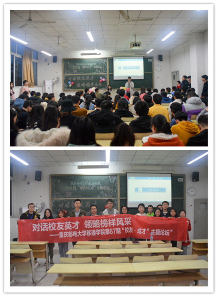 2019年3月13日,大数据与软件学院在3304教室举办了第67期“校友·成才”主题论坛。本次论坛邀请了王文涛校友和姜雪丰校友作为主讲嘉宾。