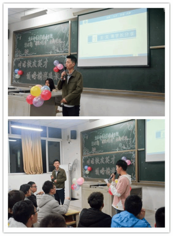 首先王文涛校友为我们分享了他的学习经验与就业经历。他讲到,我们在专业知识上要深入钻研,感受学习苦中带甜的滋味。人生的成长就是心境成熟的历程,踏入大学的门就意味着离开家的港湾、工作迈入社会就意味着离开学校的庇佑,社会残酷现实的獠牙也会逐步显露,越早领悟并寻找历练的机会对今后的发展前途越有利。职场,毫不夸张的讲就是战场,敌方是跟你同时毕业的几百万人,在这场兵不血刃的战争中想要取胜,必然需要顽强的意志,过硬的素质和开阔的眼界。最后,通过他分享的求学求职经历,进一步向我们说明了大学要有长远的目光,保持青春活力,积极参与各种活动。也让同学们了解到怎样通过学校提供的平台,多去实践,积累工作学习经验,敢于试错,大胆去尝试,提升自己的未来竞争资本!