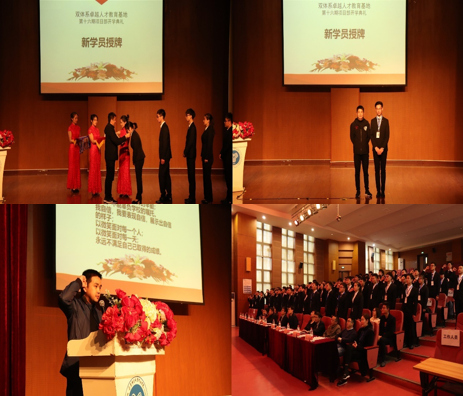 录取公文宣读完毕后,双体系主任陈仲华老师为新学员们授牌,鞠躬,握手,授牌,每一个动作都体现出新学员们对这个神圣时刻的向往。