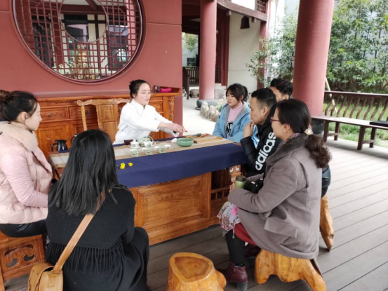 惊蛰之节万物复苏之时,饮茶听声,嗅百花香。礼仪讲解结束后,指导老师刘玲老师,亲自上场指导和表演茶艺。她,娓娓道来,瞧,在场的老师们听的多么认真。茶艺是一门综合的生活艺术,其关键就在“艺”,即技艺、技巧。茶艺表演的全过程,是一个表演者的语言、动作、神态、姿势、举止与茶、水、茶器、泡饮环境相协调的过程。