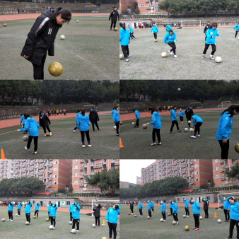 首先,教练让队员们进行颠球训练,以便队员们能迅速的找回球感。一个寒假没碰球的队员们在一次次颠球中慢慢找回熟悉的感觉和与球之间的默契。