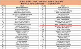 在由共青团中央网络影视中心、未来网共同主办的“燃青春,聚能量”第二届全国学生社团影响力展示活动面向全国大中专院校、中小学等学生社团、社团项目、社团联合会等多种类型社团,8000多个学生社团参评,我校学生社团联合会以丰富全面的申报材料为基础,在全校师生齐心协力的推举下,从全国千余个参评学生社团联合会高校中,一举荣获“全国最具影响力”学生社团联合会荣誉称号,也是重庆市各高校中唯一获此殊荣的学生社团联合会。