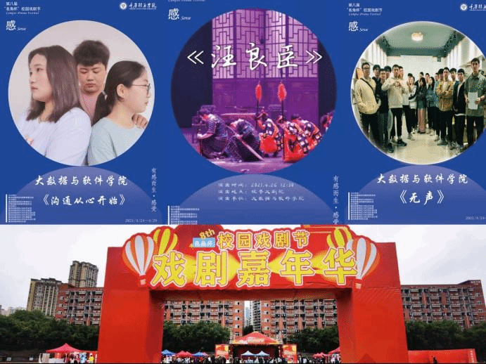 本次活动由我校艺术教育中心主办,九大院系联合协办,围绕主题“感”开展为期6天超长汇演,9大学院积极筹备演出。其中大数据与软件学院为戏剧嘉年华承办学院之一,积极协助艺术教育中心开展第八届“名角杯”校园戏剧节相关活动并积极组织我院学生参与到系列活动中,我院出演了两部小剧心理剧《沟通从心开始》、短剧《无声》、大剧《钓鱼城之汪良臣》及观众的组织等。
