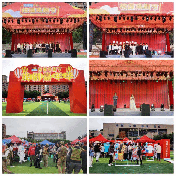 功夫不负有心人,付出的汗和流下的泪最终化作舞台上闪耀的光芒。早在2020年12月17日艺术教育中心开展了关于“第八届名角杯校园戏剧节”剧本征集活动,各学院广泛宣传积极动员,大数据与软件学院共计提交10部优秀作品,经第八届名角杯校园戏剧节组委会对二级学院报送剧目的筛选,大数据与软件学院成功入选2部剧本。2021年4月24日12:00,第八届“名角杯”校园戏剧节戏剧嘉年华在足球场如期举行,本次戏剧嘉年华囊括小戏小品展演与各项外围活动的展开,包含舞台区、角色造型体验区、舞台美术体验区、戏剧游戏体验区、戏剧文化展示区、团委活动区、书院活动区共七个区域。舞台区共计有14部小戏小品展演,主要由大数据与软件学院与通信与物联网工程学院共同承办,参与本次戏剧嘉年华的评委有:艺术教育中心副主任邹贤达老师、钓鱼城科幻中心徐亚樵老师、廊桥书院发展导师赖昌荣老师、廊桥书院发展导师滕壬鑫老师、汇江书院发展导师刘小路老师。参与本次演出的有心理剧《沟通从心开始》和短剧《无声》,分别讲述了成长过程中亲子冲突以及反校园暴力。本次戏剧节嘉年华以展演的形式进行呈现,拉近了戏剧与观众的距离,各展区的设计让戏剧变得更有“活力”,也加强了同学们的体验感和参与感同时促进了戏剧文化的传播。