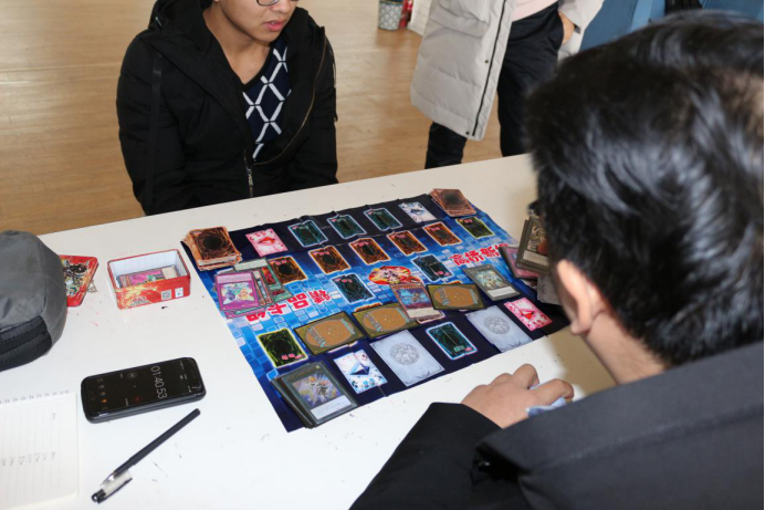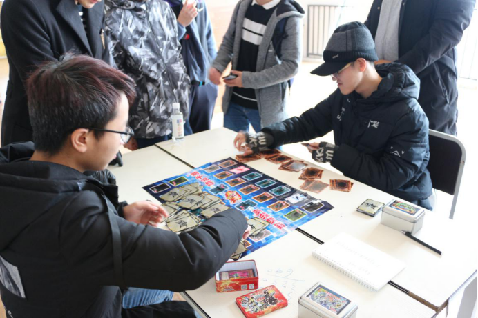 本次比赛共分为两个项目:游戏王——决斗怪兽、三国杀——群雄争霸。初赛开始不久,人群中便发出喝彩声。2号席红方选手通过连锁在一回合之中利用“同调召唤”“超量召唤”成功召唤出了多只上级怪兽,局势瞬间一边倒。蓝方选手开始通过魔法卡加强防御,抓准机会攻破敌方一只主力怪兽,随后两边不相上下,愈战愈勇。