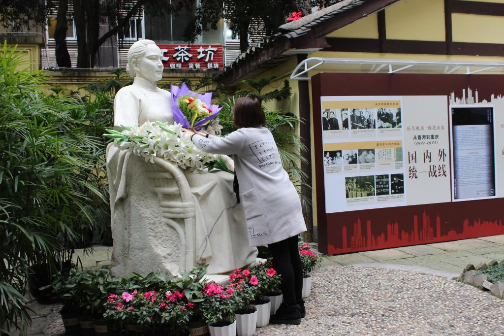 合作协议签订后,在王玉茹馆长的陪同下,我校师生向宋庆龄先生雕像敬献了鲜花。