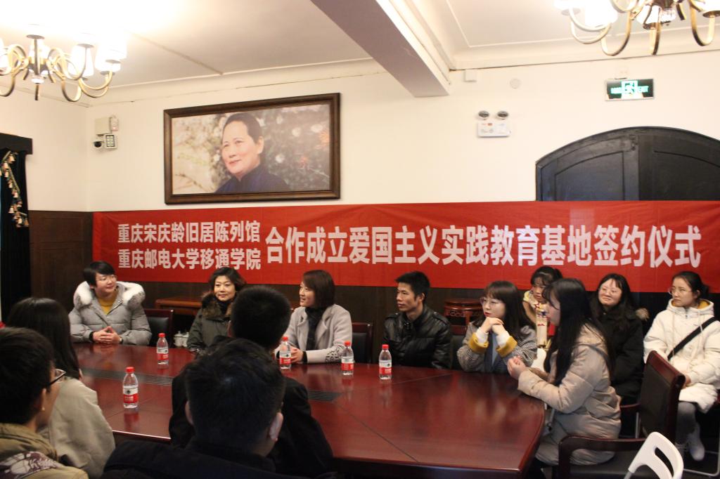 为深入贯彻落实习近平总书记在全国高校思想政治工作会议上的讲话精神以及全国本科教育大会精神,坚持立德树人,弘扬和培育社会主义核心价值观,加强对大学生的爱国主义教育,我校充分利用优质社会资源,不断拓展大学生爱国主义教育实践平台。12月13日下午,我校与重庆宋庆龄旧居陈列馆举行爱国主义教育实践基地共建签约授牌仪式。重庆宋庆龄旧居陈列馆馆长王玉茹女士、业务科陶昕、我校思政教学部主任邓燕老师、德育教研室杨勇老师以及宋珊老师、王婉伊老师、姚黎华老师及优秀学生代表出席本次会议。会议由重庆宋庆龄旧居陈列馆业务科陶昕主持。