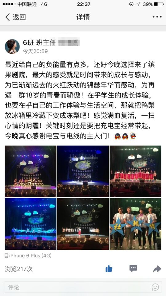他是社联的干事,几个星期前还在熬夜写策划,整理道具,他自己也叫苦,但是每次活动他比谁都积极:虽然累,但和大家一起更开心呀!合唱到最后,大家都哽咽了,彩排的时候也没说好啊,怎么大家都不约而同的没有停止歌唱呢?不用往旁边看,也知道,都红了眼...
