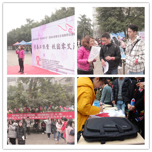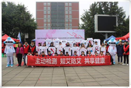 2018年12月1日是第31个“世界艾滋病日”,为进一步推动艾滋病防治工作,全面响应《中国全面遏制与防治艾滋病“十三五”行动计划》,营造全民参与艾滋病防治的良好的氛围。2018年11月28日星期三中午12:00,重庆市2018年青年爱不“艾”高校社团参与艾滋病防治宣教活动之重庆邮电大学移通学院“青春正能量·校园零艾滋”首届防艾公益文化衫彩绘大赛决赛在一二教广场隆重举行。合川区疾控中心艾防科杨恩泽科长一行三人出席了本次活动。