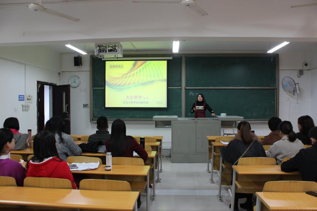 2018年11月21日下午四点,思政教学部在1310举行经典研读分享交流会。张燕霞老师向大家推荐了艾思奇的《大众哲学》(修订版)一书,并分享自己的阅读感悟。此次分享会由教学部主任邓燕主持,思政教学部全体教师参加。