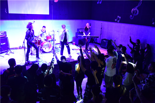 一声声震耳欲聋的音乐一直回响耳边,与耳膜疯狂的碰撞。台上主唱弹着吉他,沧桑的嗓音在嘶吼,伴随着嘶吼的是身体疯狂的摆动,摇动的身体在宣泄,架子鼓手用敲打在记录。所有人,沉浸于音乐之中,与音乐相互交融,热血澎湃的感染力影响着台下的每个人,不由自主的跟随乐队的脚步,去嘶吼、摇晃。