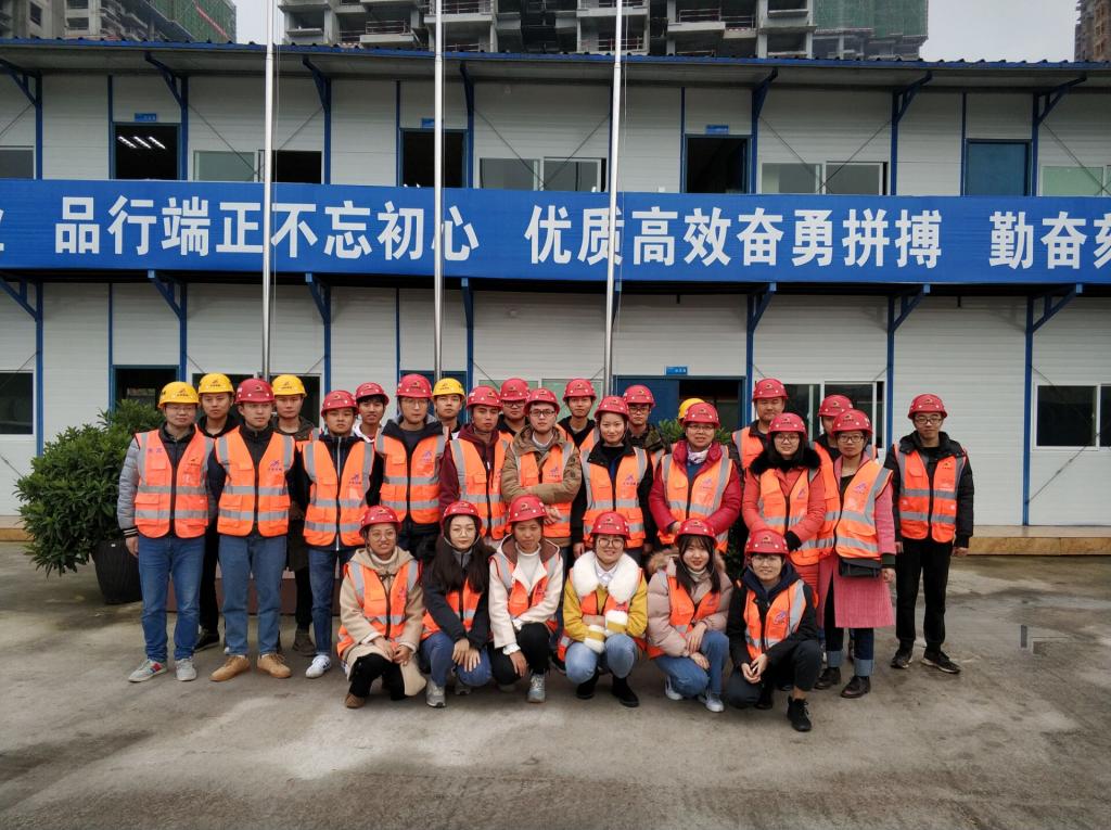 2018年11月21日,在学校领导及管理工程系系主任林毅老师、教研室主任周梦娇老师的大力支持下,工程管理教研室李红艳、刘霖、徐桂霄、陈明燕四位老师带领我系二十名大三学生,组成代表团,前往位居钓鱼城东部新城核心的北新御龙湾的在建项目,进行实地考察学习。