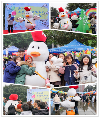 中午,风采展内人流量大大增加,各个支队的支队长依次走上舞台拿起话筒面向大家介绍自己支队文化特色,不少学子驻足倾听。同时伴随着我校志愿服务吉祥物“爱鸭”与大家的首次见面,学子们都争先与爱鸭进行合照,现场氛围被推至高潮。