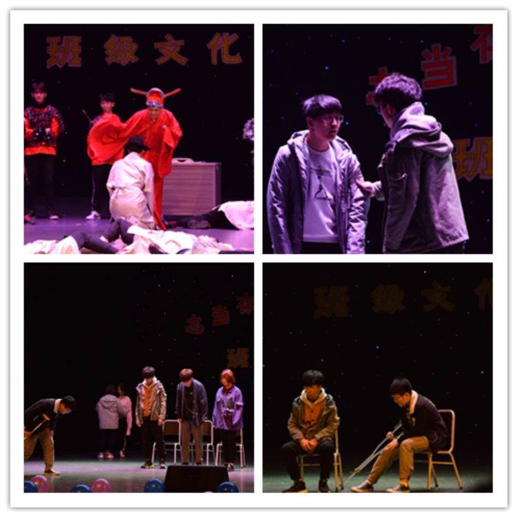 班级文化是美丽的,展现班级文化的机会是宝贵的。甲骨文艺术团开场表演之后,参加终选秀的各个班级用视频简要介绍了班级成员、班级口号,展示了班级风采,并通过舞台剧、歌舞剧、小品、话剧、合唱串烧等形式展示了班级文化,详细阐释其灵感来源和深刻意义。或唱、或跳、或哭、或闹……每一个动作都是那么的恰到好处。
